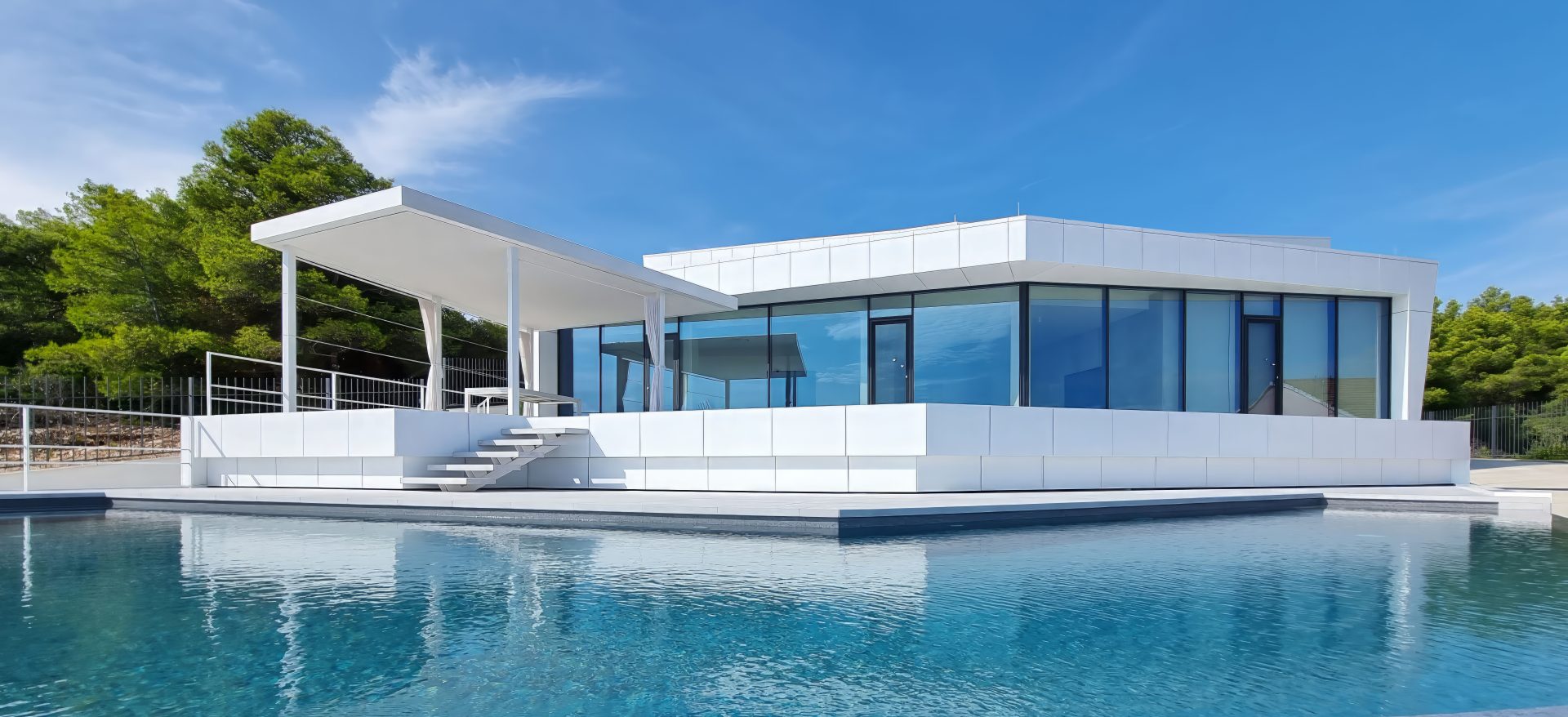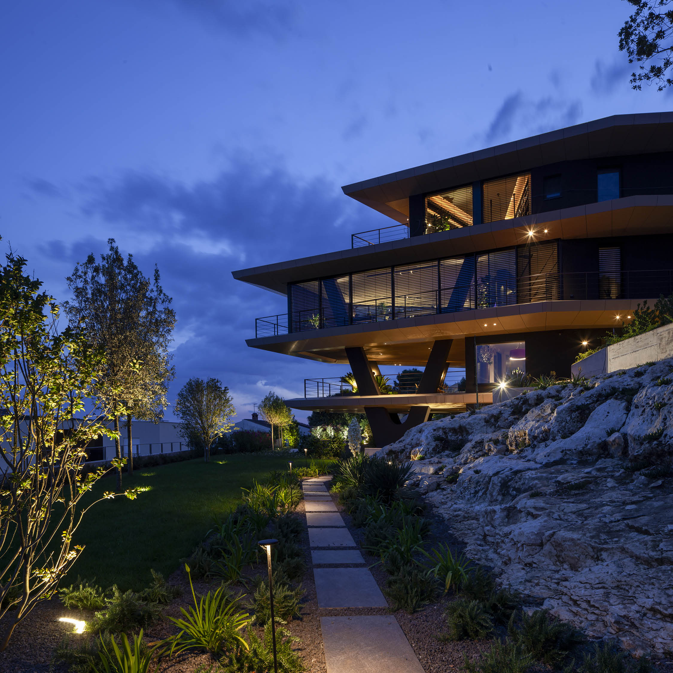 Minimalism blending with the Mediterranean environment. Clean lines, clear colour solutions and the use of Kerrock materials to complement the light, rain and wind.