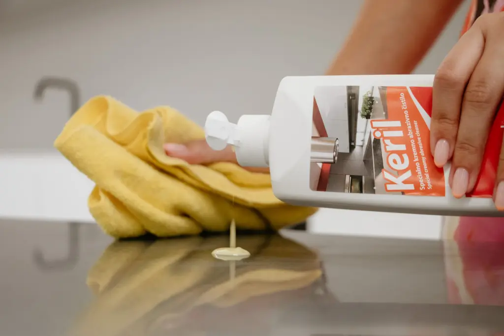 For matt surfaces, use a cleaning pad (e.g. Vileda Glitzi) and a 3:1 solution of bleach and water or a special abrasive cleaner such as Keril. After cleaning, rinse the surface several times with warm water and wipe dry.